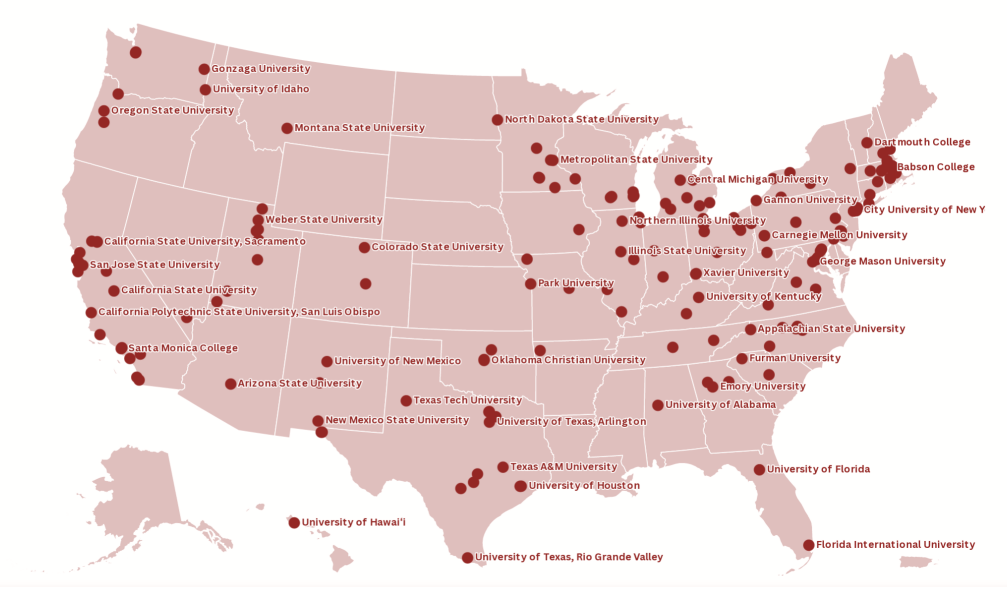 《高等教育內幕》網站4月12日發佈的受影響大學分佈地圖