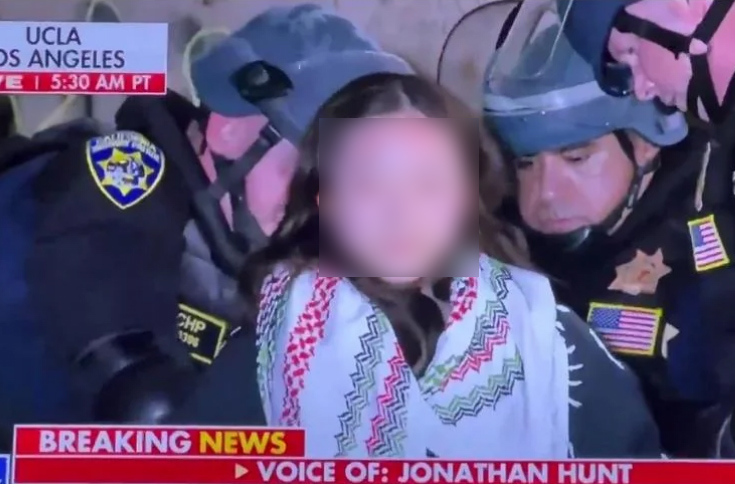 駐聯合國記者徐德智在2月初報道過這位勇敢的姑娘,指出境外流傳的關於她的身份都是明顯的假消息。截至目前,我們對她唯一可靠的瞭解仍限於“2024年UCLA清場中一名被加州州警短暫逮捕的圍巴勒斯坦頭巾的外觀東亞裔年輕女性”,其他一概無法證實;