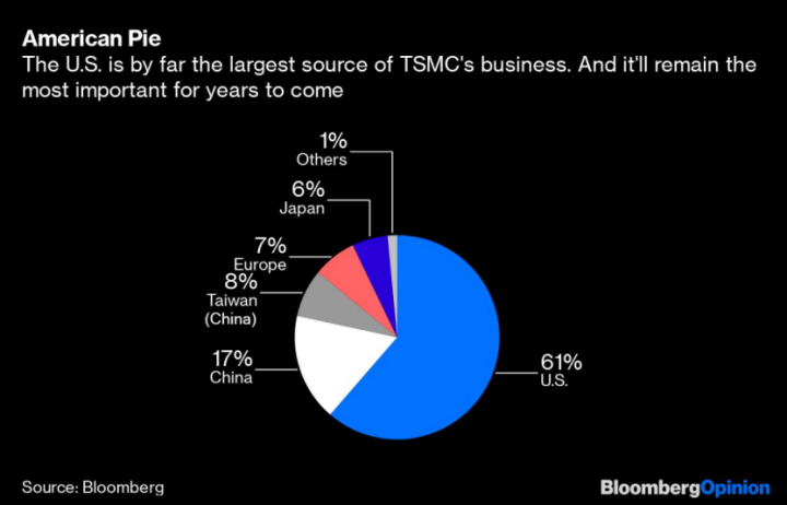 首先,這個計算方法基本只遵循客户公司的總部所在地,蘋果、英偉達、AMD、高通、博通等大客户均在美國,因此這幾家幾乎可以聯手貢獻台積電近八成的收入,所以這個區域佔比無法真正説明芯片產能的終端流向和市場需求。