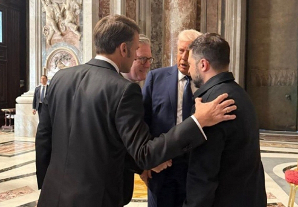4月26日,美英法烏領導人在出席教皇葬禮期間交談。 社交媒體