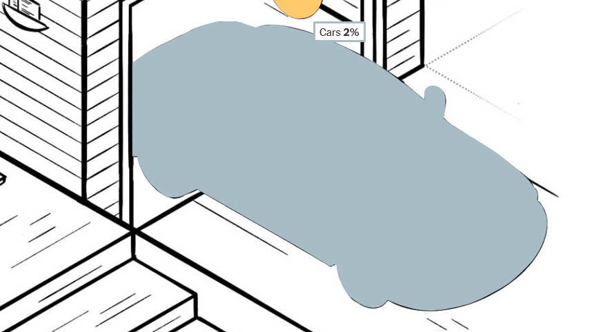 《紐約時報》可視化報道,展現一個普通美國家庭對中國進口產品的依賴比例程度。 灰色為0-20%,綠色為20%-40%,黃色為40%-60%,橙色為60%-80%,紅色為80%-100%