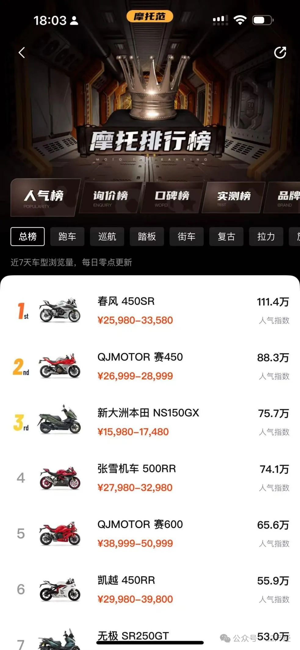 在中國摩托車產業版圖中,浙江板塊始終佔據着重要地位。以春風動力和錢江摩托為代表的“雙子星”浙系品牌,在全國摩托車品牌榜單裏一直是前三的存在。在摩托車圈子裏,大多數人第一輛仿賽摩托車不是春風動力的250SR,就是錢江摩托的賽450。 同時,近年來隨着春風動力出品的性價比高、設計潮流、品牌效應好的摩托車系列,也成為了年輕羣體裏最受歡迎的“網紅品牌” 之一。