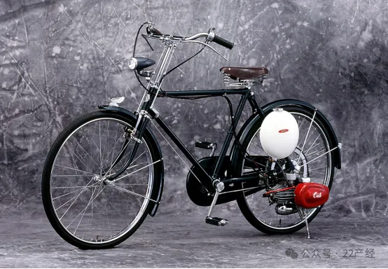 本田Cub F-type於1952年推出,自行車的“夾式”汽油發動機套件,以白色油箱和紅色發動機為標誌。日本汽車工程師協會將本田Cub F-type列為其240項日本汽車技術里程碑之一。 圖源:本田