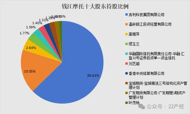 錢江摩托十大股東持股比例。 圖源:UME DAO
