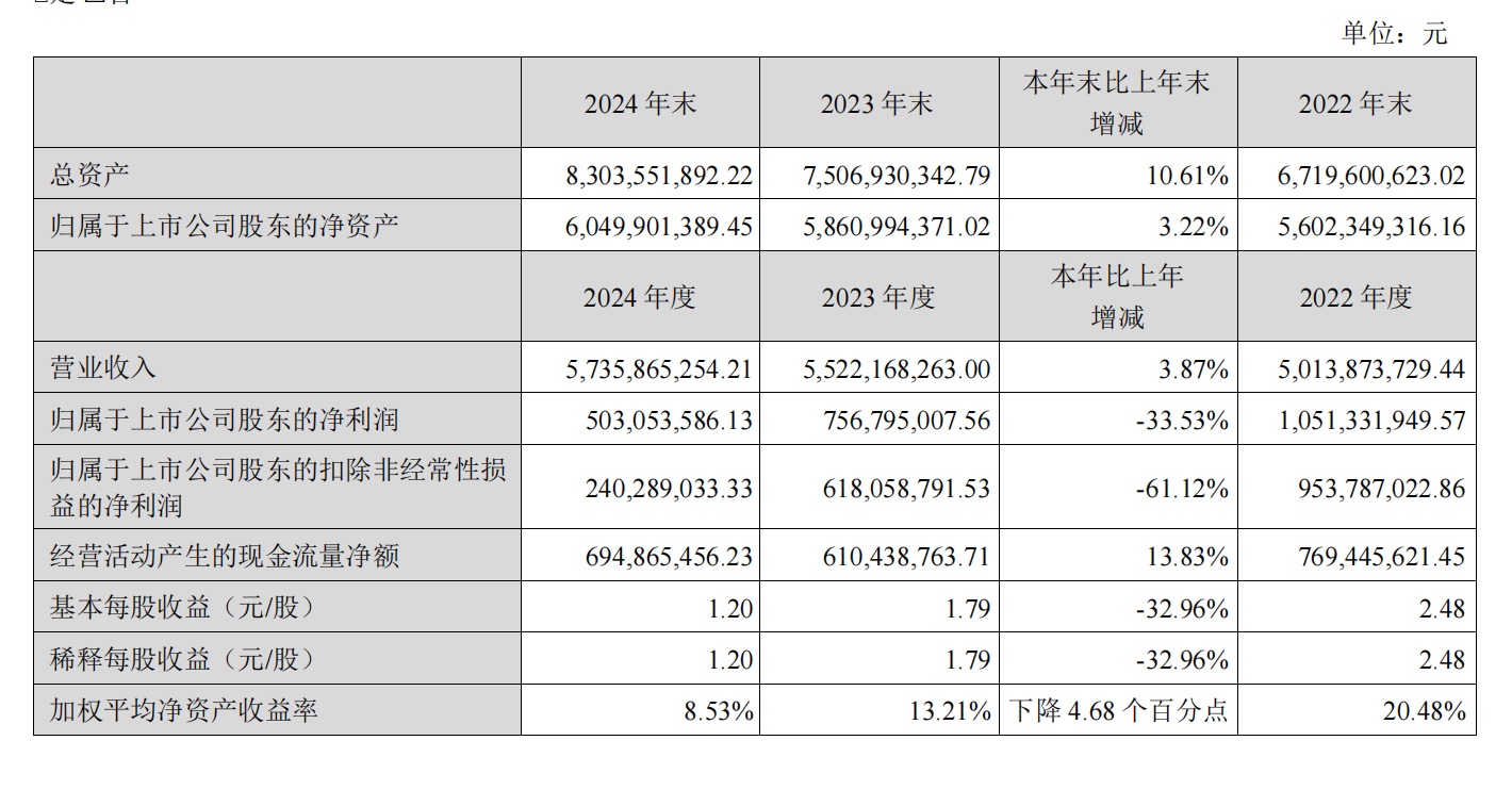 根據年報數據,貝泰妮2024年全年實現營業收入57.36億元,同比增長3.87%,儘管歸母淨利潤受到多重因素影響,同比下降33.53%至5.03億元,但公司核心財務指標仍保持健康,資產總額達83.04億元,淨資產規模突破60億元。