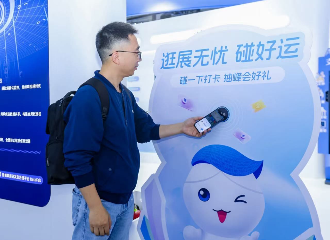 “支付寶碰一下”是一種全新的數字生活交互方式。目前,“碰一下”已經在全國400多個城市、5000+品牌、千萬商家的門店,被上億用户使用,成為了面向未來的用户服務和商家數字化經營新入口。在展區,螞蟻集團還展出了更多與普通用户相關的政務民生、就業招聘、物業開門、酒店入住、收藏資料、交換名片、打卡抽獎、快捷開發票等“碰一下”服務,全方位覆蓋了生活與商務場景,讓數字化技術真正融入人們的日常點滴。