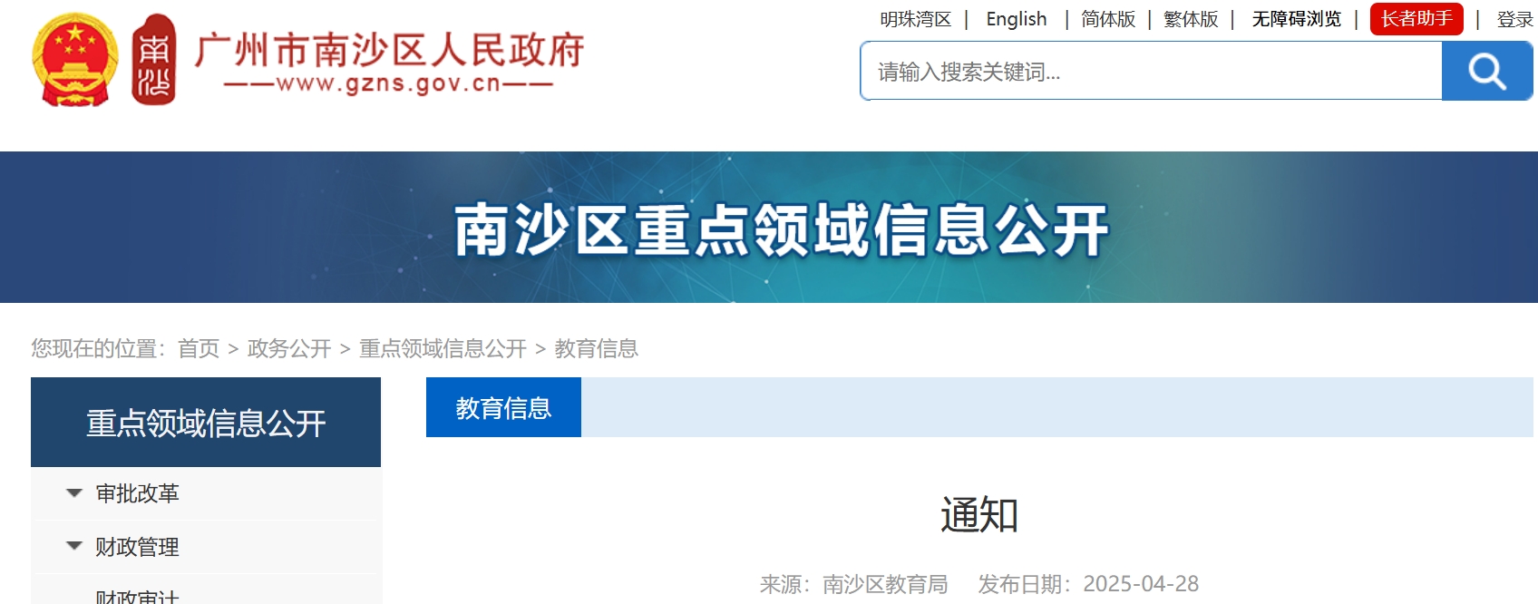 廣州南沙區教育局4月28日發佈通知稱,符合條件的非南沙區户籍適齡兒童、少年可申請入讀南沙區義務教育階段起始年級區屬公辦學位。