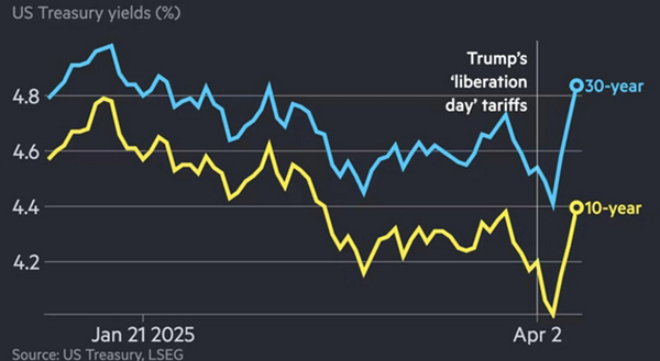 《紐約時報》分析稱,當大量投資者同時拋售債券時,美國政府將不得不提供更高的利率來吸引其他人購買其債券。這往往會推高整個經濟體的利率,增加房貸、汽車貸款和信用卡貸款還款的支出。這都加劇了經濟衰退的可能性。