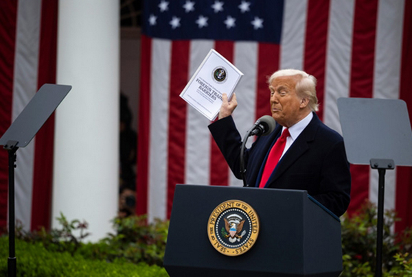 4月2日,特朗普手持一份關於外貿壁壘的報告發表講話。 視覺中國