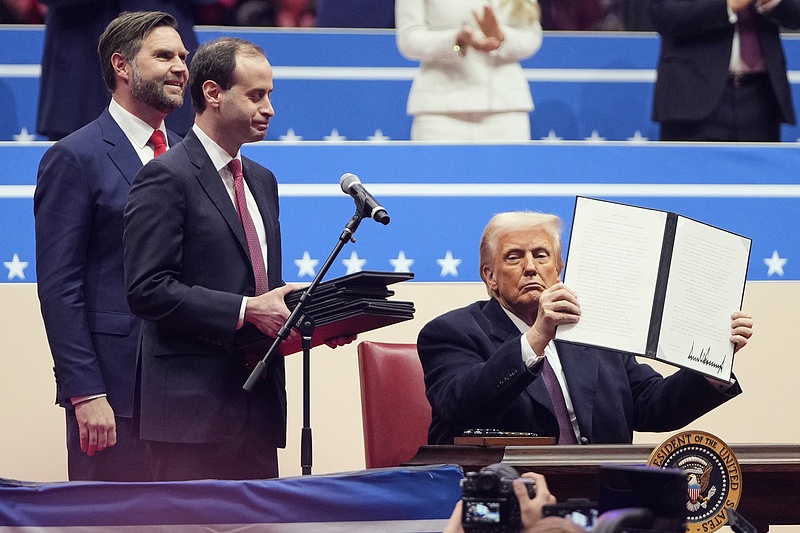當地時間2025年1月20日,美國華盛頓特區,美國總統特朗普就職後簽署一系列過渡文件。 視覺中國