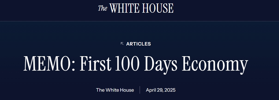 據《南華早報》報道,白宮官網29日公佈了由白宮經濟顧問委員會撰寫的“百日經濟備忘錄”,通篇未提及“對等關税”,甚至連“關税”二字都未出現。這份備忘錄將重點放在就業與通脹數據統計上,忙着“拉踩”上屆拜登政府的相關數據。