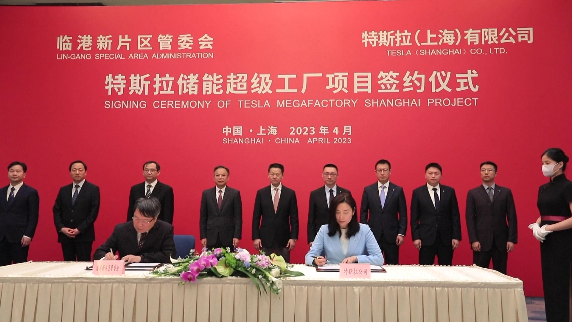 2023年4月,特斯拉上海儲能超級工廠項目簽約 視覺中國