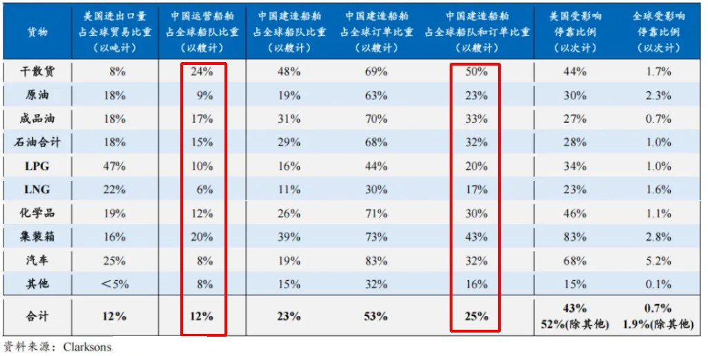 此外,這些航運巨頭在用的船舶也更多是韓國造,中國造的商船主導航運市場更多是未來的預期。以國際貿易典型的大型集裝箱船(超過1萬TEU)為例,前10大航運企業在用的中國造船舶的運輸能力(TEU)僅佔26%,而韓國則是60%,但就在建船舶運輸能力而言,中國則高達73%,韓國為23%。進一步分析運營美國航線的集裝箱公司中國建造的船舶數據,涉及美國航線的集裝箱船1073艏,其中中國製造的船舶佔比只有23%,即使中遠海運也只佔46%,這也可見中國市場的開放性。