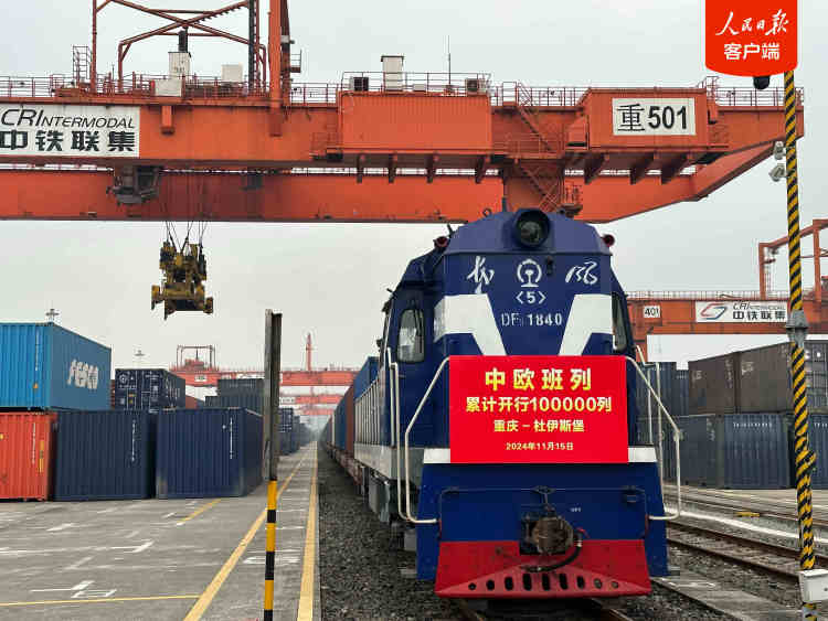 2024年11月15日,隨着X8083次中歐班列(重慶—杜伊斯堡)從重慶團結村站開出,標誌着中歐班列累計開行突破10萬列,發送貨物超1100萬標箱、貨值超4200億美元。
