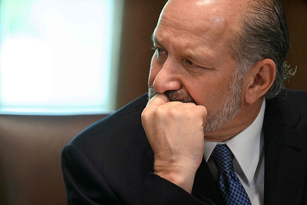 4月30日,盧特尼克在白宮內閣會議室聆聽特朗普發言。 視覺中國