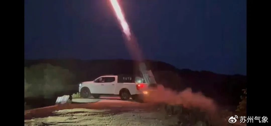 據@蘇州氣象 消息,4日晚,蘇州市氣象局、吳中區氣象局、崑山市氣象局、張家港市氣象局等人影作業隊伍提前到達作業點,等待時機及時開展增雨作業。在空管部門的批准下,5日凌晨 4點40分到5點之間抓住寶貴時機共計發射火箭彈10枚。