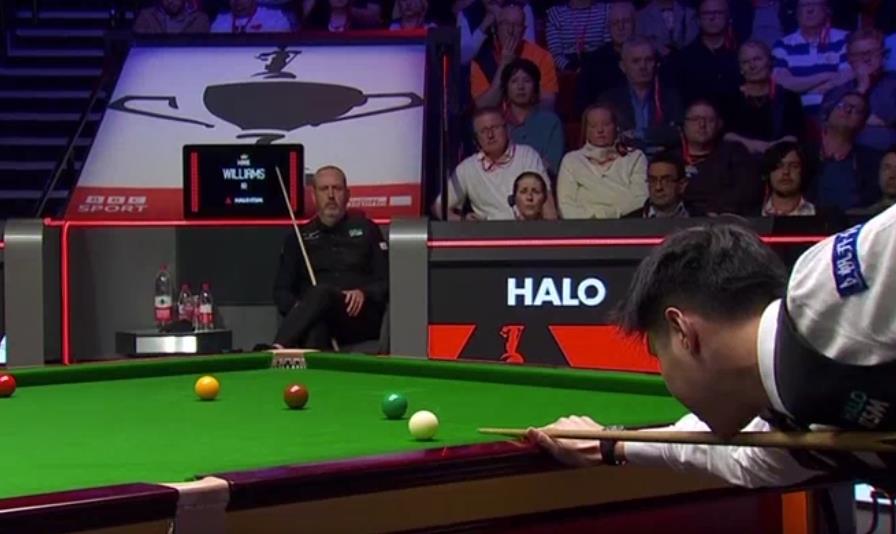 決賽第三階段,趙心童再贏6局,總比分17比8領先威廉姆斯。