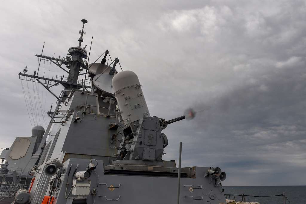 (資料圖)正在射擊中的“密集陣”艦載近防炮 美國海軍