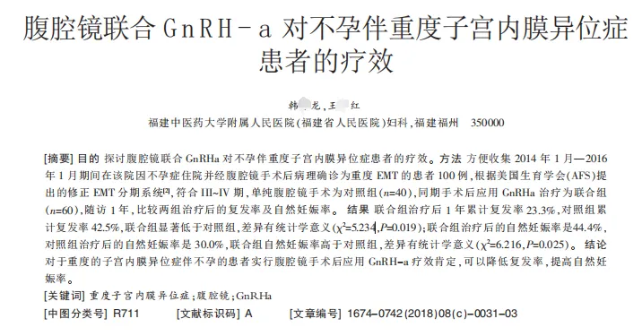 該論文名為《腹腔鏡聯合GnRH-a對不孕伴重度子宮內膜異位症患者的療效》,並收集了在該院的100例患者樣本。在樣本病例中,男性患者達64例,引發網友熱議。該論文於2018年發佈在由國家衞生計生委醫院管理研究所、二十一世紀聯合創新(北京)醫藥科學研究院主辦的《中外醫療》期刊。
