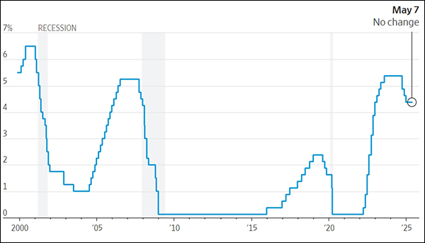 【文/觀察者網 王一】頂着美國特朗普政府要求降息的施壓,美國聯邦儲備委員會5月7日第三次宣佈維持利率在4.25%至4.50%的區間不變。