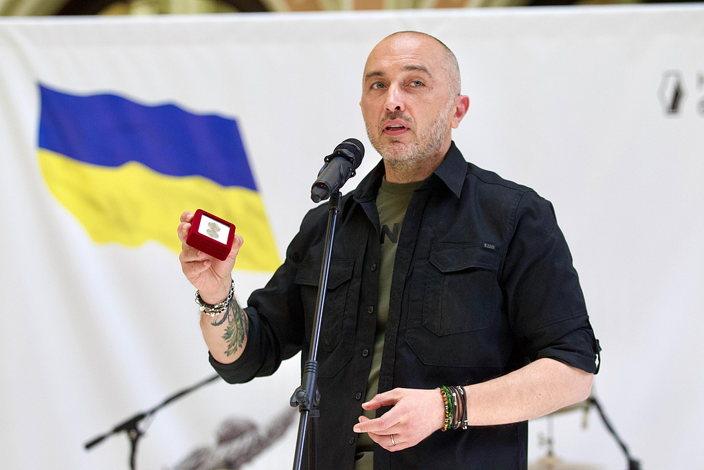 2023年8月4日,烏克蘭基輔,烏克蘭中央銀行行長安德烈·皮什尼出席在烏克蘭國家銀行舉行的空軍日紀念幣發行儀式。視覺中國