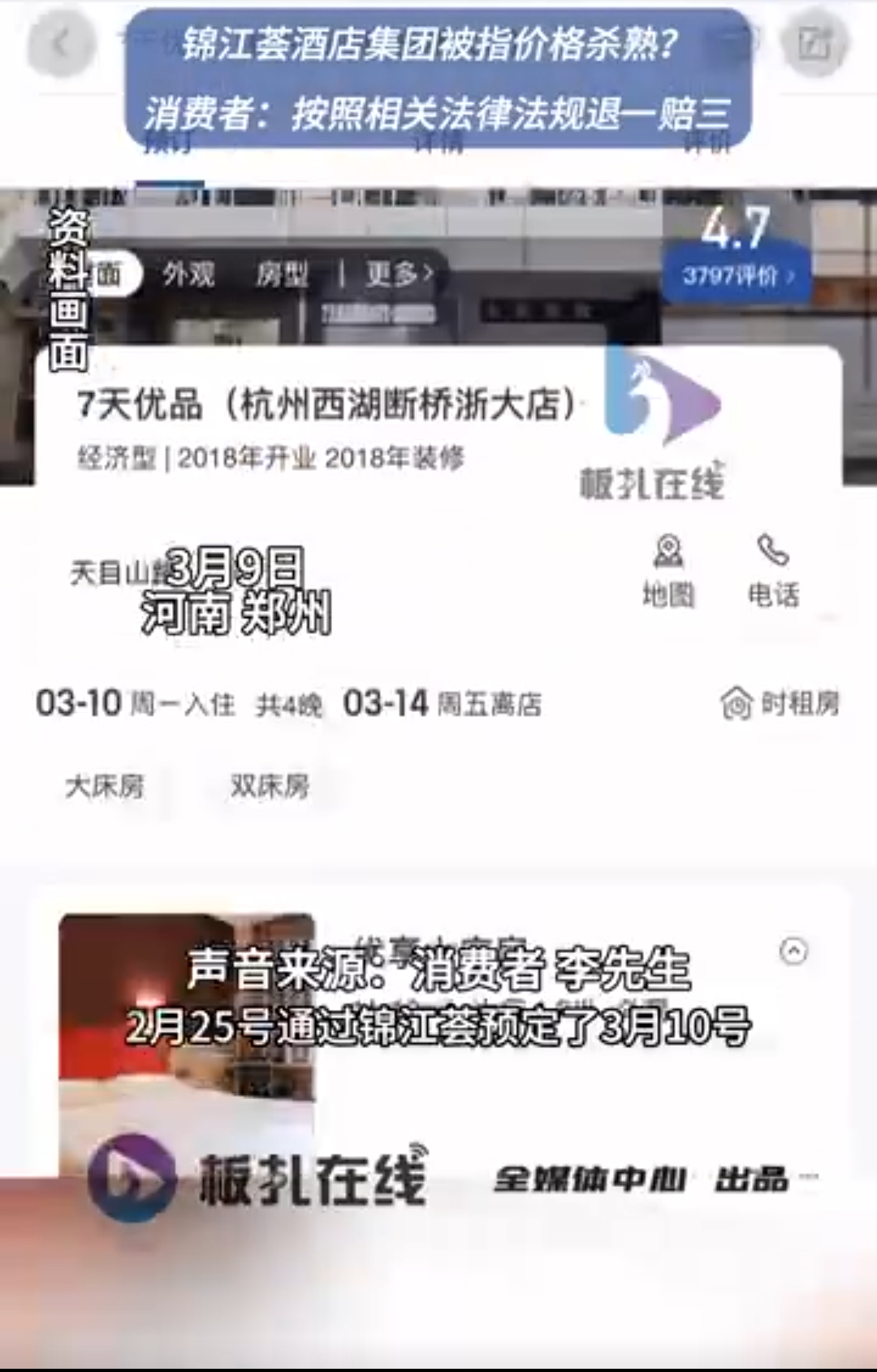 針對近日派酒店(南昌市青雲譜區八大山人店)、7天優品(杭州西湖斷橋浙大店)出現的情況,錦江酒店集團方面曾回應稱,對於多次出現價格異常問題的門店,公司已重點關注併發函整改。目前已要求該店關閉官方渠道頁面預訂功能,同步推進相應處罰措施。