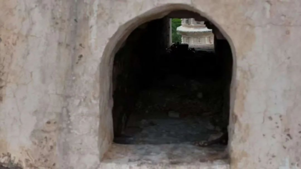 涉事“飛手”在景區圍牆外啓動操控穿越機飛入三塔景區,在穿越三塔南小塔券洞時落在洞內。