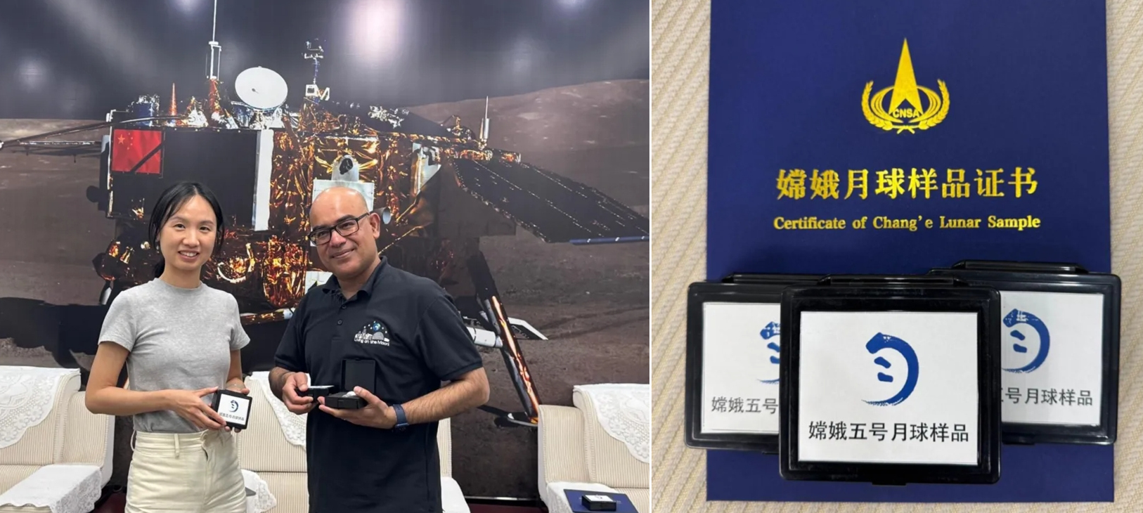 在隆重莊嚴的儀式現場,身旁站着來自來俄羅斯、日本、巴基斯坦和歐洲的同行們,英國開放大學的阿南德教授(Mahesh Anand)懷着激動的心情,從中方人員手中鄭重接過了裝有月壤樣本的小瓶。