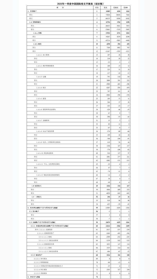 國家外匯管理局5月9日發佈2025年一季度我國國際收支平衡表初步數。