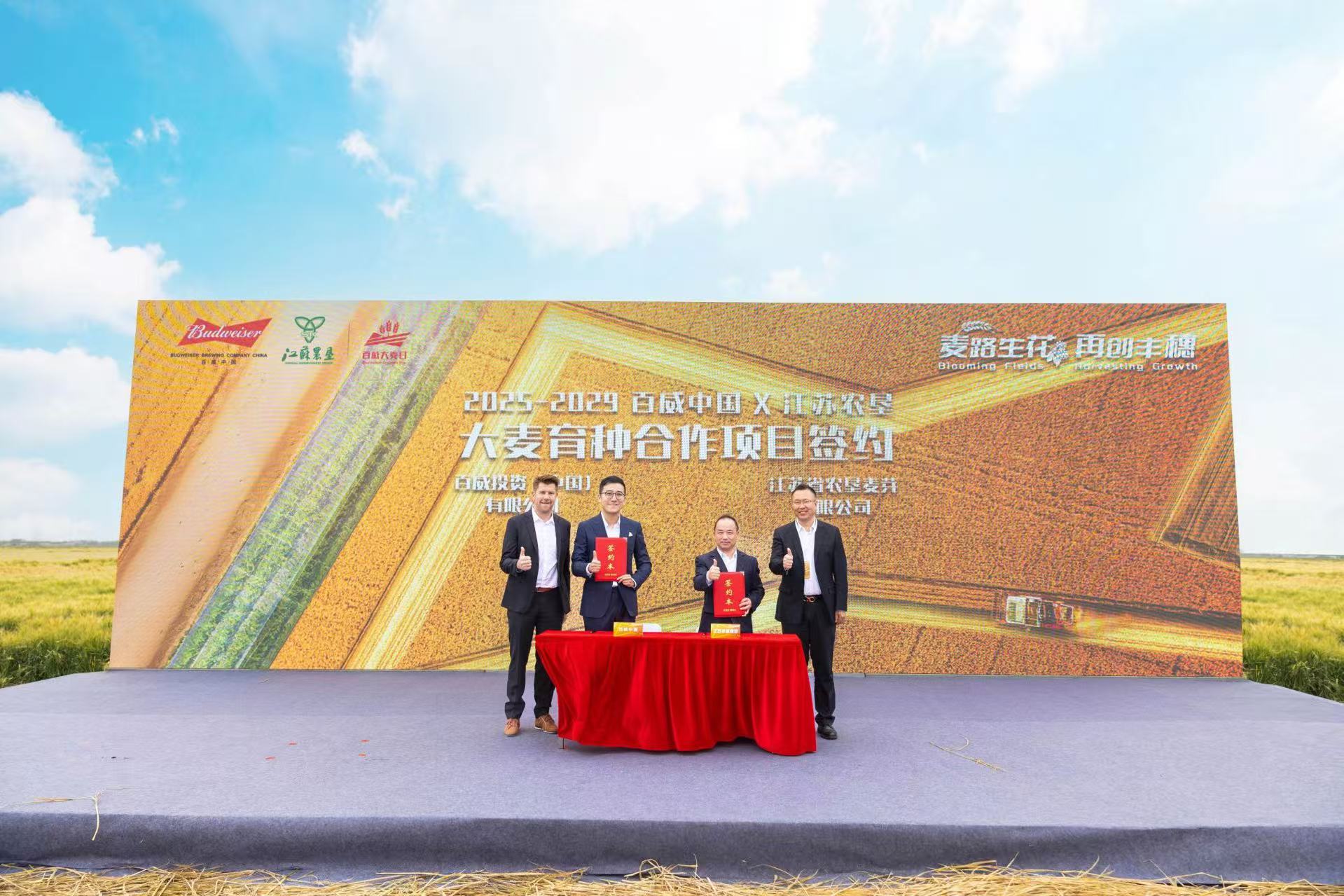 百威中國與江蘇省農墾麥芽有限公司共同簽署2025-2029百威中國與江蘇農墾大麥育種合作項目