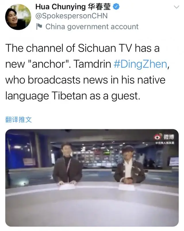 在丁真做客四川電視台,用藏語播新聞後,華春瑩也發帖介紹過。