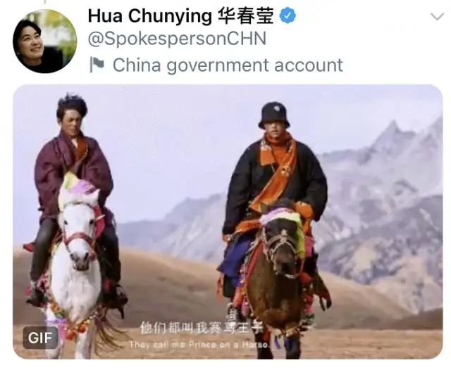 在另一條推文裏,華春瑩在推文中發佈了丁真騎馬的一個片段,配有丁真的一段自我介紹:“他們都叫我賽馬王子。最開心的是和兄弟們賽馬。我騎馬很厲害的,村裏比賽經常拿第一。”