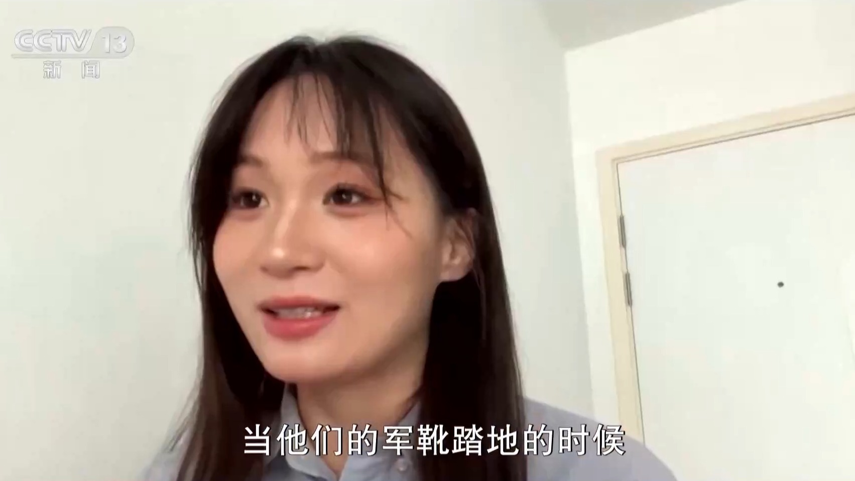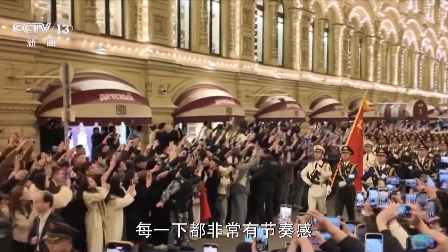 中國在俄羅斯留學生胡可心:我們當時去的時候人山人海,在莫斯科看到這麼多同胞組成的方陣,那種震撼是難以言表的,而且當他們的軍靴踏地的時候,每一下都非常有節奏感,都像踏在我們的心跳上一樣。