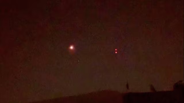 當地時間5月10日,印巴宣佈停火後,印控克什米爾地區斯利那加天空中出現的閃光 路透社