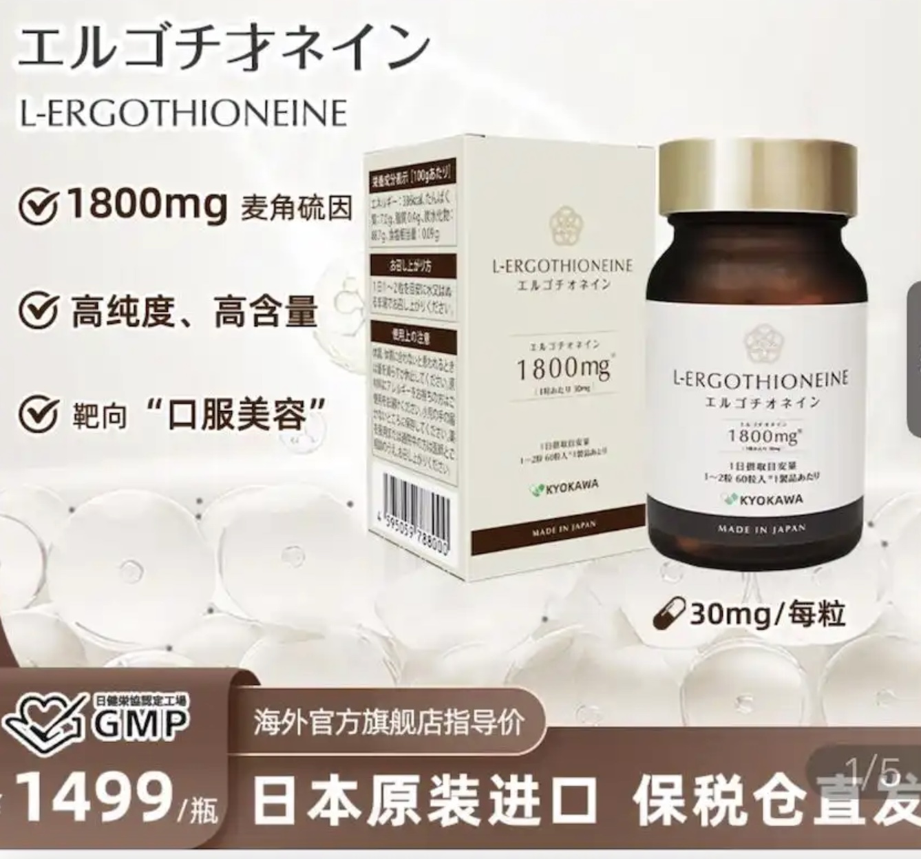 據悉,這款麥角硫因膠囊是科倫藥業佈局高端膳食補充劑領域的產品,由全資子公司科倫永年負責銷售,定價1499元/瓶(每瓶60粒),單粒含量達30mg高活性麥角硫因,原料由科倫旗下川寧生物直供。