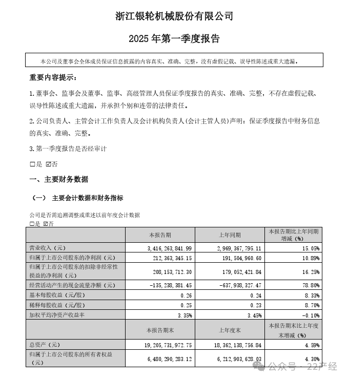 銀輪2025年第一季度財報。 圖源:銀輪