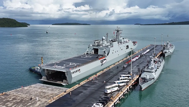 今天(5月12日),中柬“金龍-2025”聯演中方參演部隊通過數天海上機動,抵達柬埔寨雲壤港。柬方在碼頭組織了隆重的歡迎儀式。這也是中柬雲壤港聯合保障和訓練中心正式掛牌運行後首次保障中柬聯演任務。