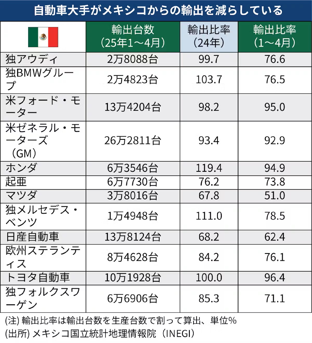 墨西哥出口率變化 日本經濟新聞