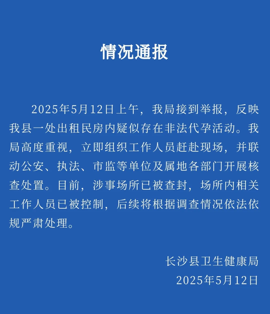 長沙通報一出租房疑存非法代孕:查封涉事場所,相關人員被控制