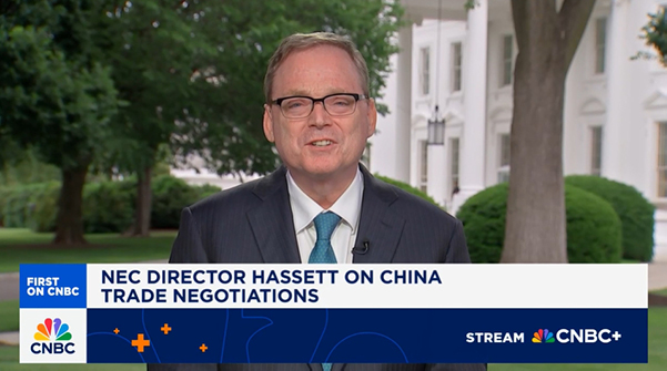 據《華爾街日報》報道,當地時間5月12日,白宮國家經濟委員會主任凱文·哈西特在接受美國消費者新聞與商業頻道(CNBC)採訪時表示,與中國達成的在未來90天內降低關税的協議是修復兩國關係的一種方式。