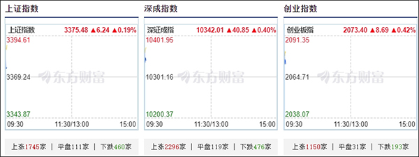 5月13日,A股三大股指集體高開。其中,上證指數漲0.5%報3386.23點,深證成指漲0.98%報10401.95點,創業板指漲1.29%報2091.35點。