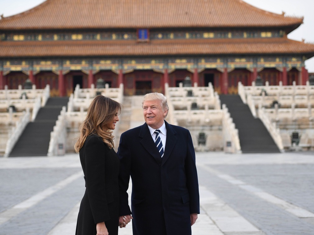首個任期中(2017年),特朗普訪華時,和夫人梅拉尼婭一同參觀了故宮。 圖自AFP