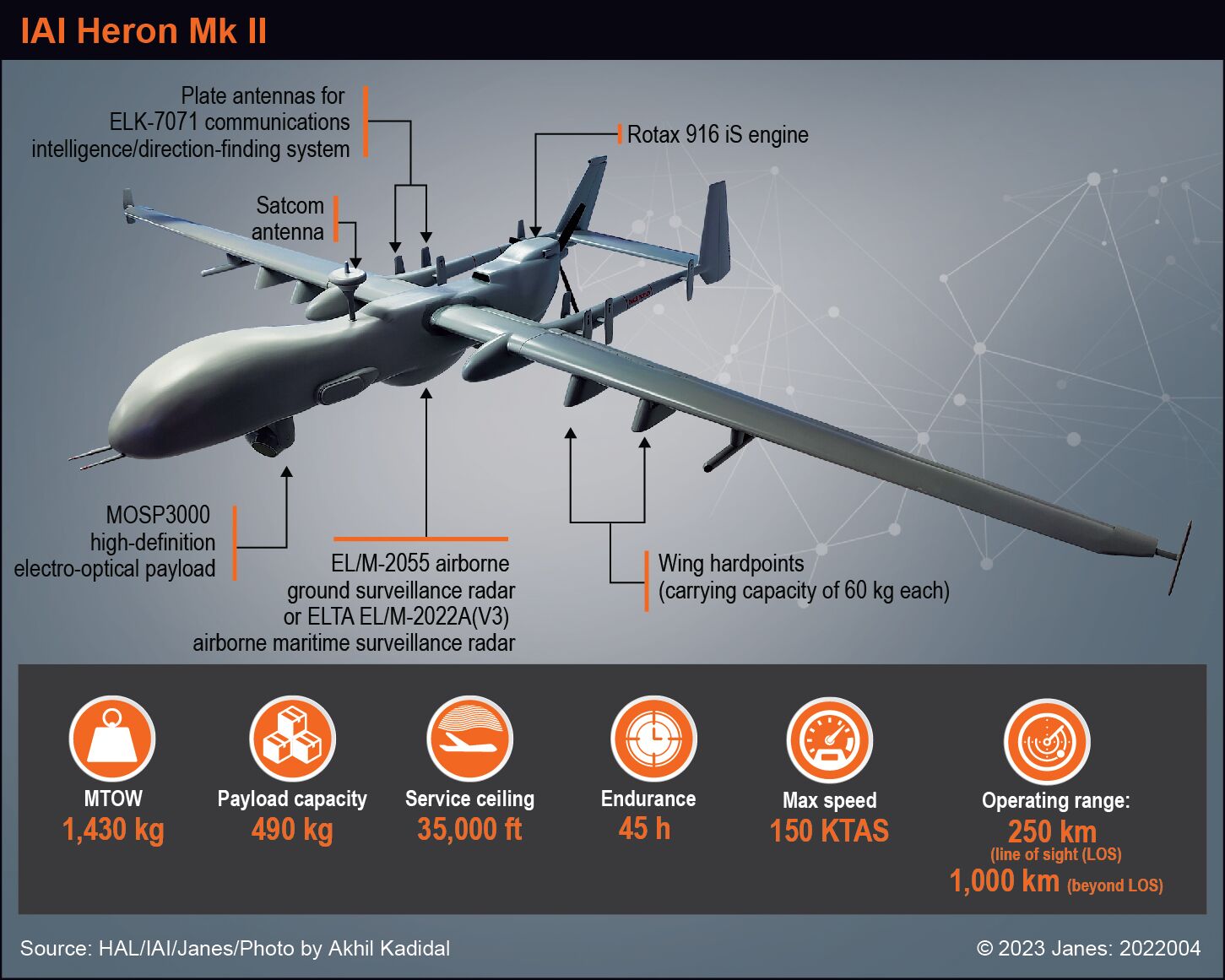 客觀來説,這並不代表印巴雙方現有防空反導系統無法應對無人機威脅,無論從俄烏戰爭還是從巴以衝突的經驗看,傳統防空導彈系統依舊對高價值固定翼無人機擁有極高的防禦能力。在印度最初發起襲擊期間,巴方就宣稱擊落了至少一架印度“蒼鷺”無人機,並且得到了確認。但是此類無人機也價格較為昂貴,因此數量稀少。在2005年11月印度就斥資2.2億美元購買了第一批50架以色列“蒼鷺”無人機,並在2019年進一步斥資五億美元購買了50架“蒼鷺”Mk2。