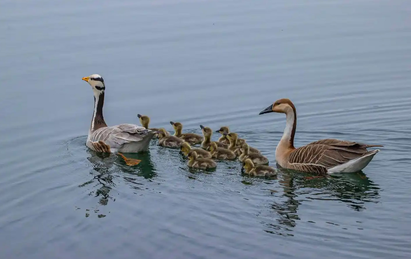 近日,鴻雁與斑頭雁在北京亦莊調節池水域成功雜交孵化出11只幼鳥。此次觀測到斑頭雁與鴻雁雜交的幼鳥,部分幼鳥體表呈現斑頭雁的灰色羽紋,喙部則保留鴻雁的形態。這類跨物種雜交案例十分罕見,或為野生物種保護提供新思路。