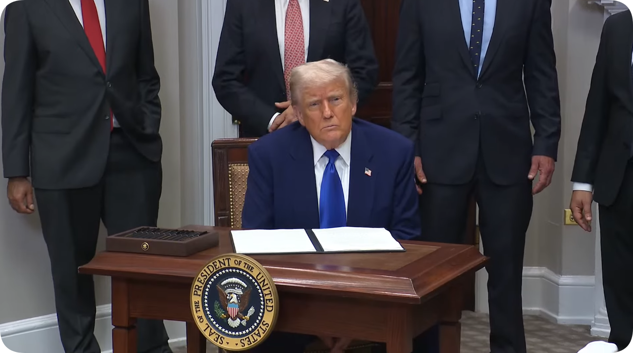 當然,對比4月2日特朗普在“解放日”那天有多張狂,在日內瓦就有多挫敗。他在白宮籤行政令的新聞發佈會上出現了非常罕見的失態,講完話沒有籤那個行政令,轉身就走,直到被工作人員喊停,他再回來把它籤掉。