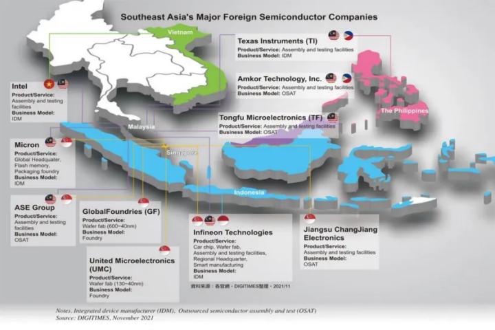 而且過去幾年以來,出於對供應鏈的風險分散和成本控制的需求,英特爾、英飛凌、美光等企業紛紛加大在馬來西亞的投資,讓馬來西亞在全球后道封裝產業的地位進一步被夯實,該國的檳城和居林等工業園集中了近乎50家半導體工廠,形成了成熟的OSAT(封測工廠)產業生態。