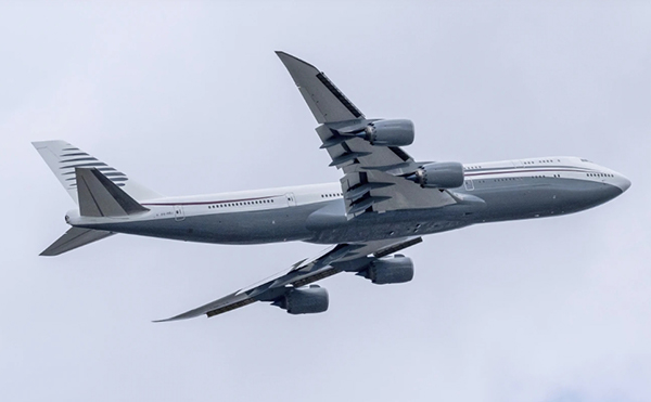 特朗普2月參觀的、卡塔爾王室計劃贈送給他的波音747-8型客機。 美聯社