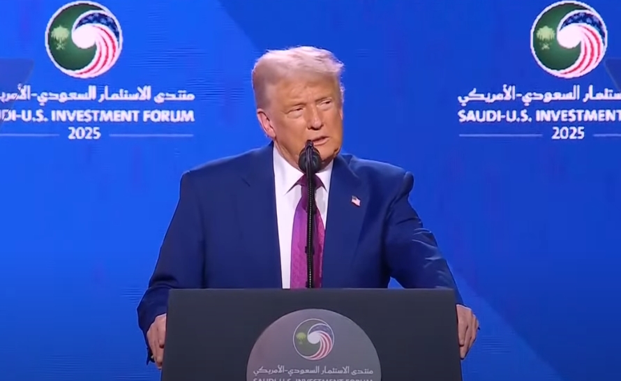 5月13日下午,利雅得,美沙投資論壇的奢華宴會廳裏,特朗普發表了時長40來分鐘的演講,開口就是一番極力吹捧。