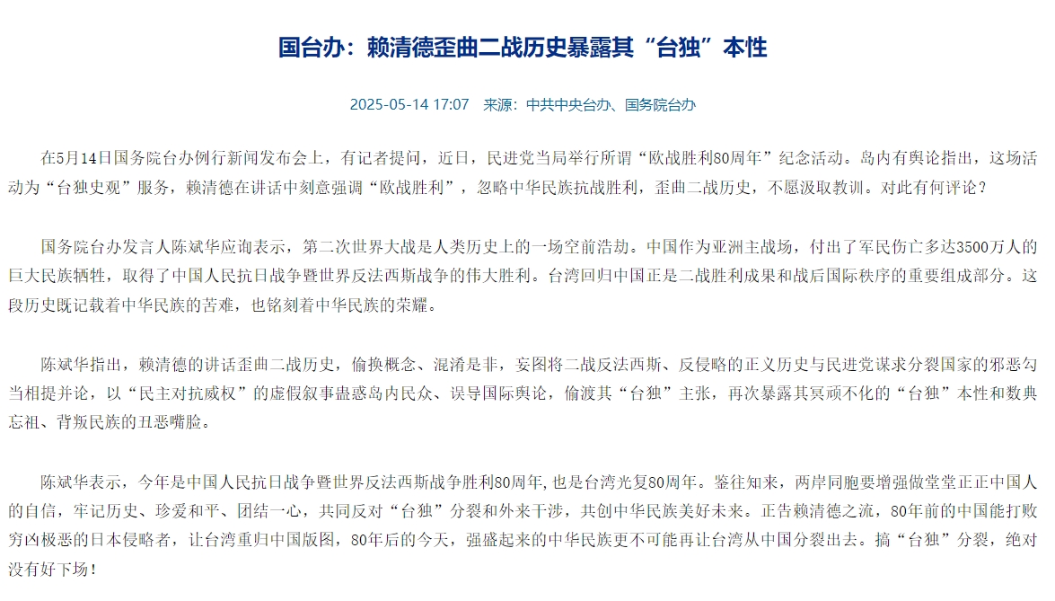為了區別“中國人民抗日戰爭勝利80週年”,以及回應大陸方面定調“兩岸同胞共同紀念抗戰勝利80週年和台灣光復80週年”,並緊抱地緣政治想象中殘餘的“抗中反華”浮木,賴清德趕在中俄紀念二戰勝利聯合聲明的時刻逆天演出“台日一家親”,不得不使人記起杜魯門在用原子彈轟炸廣島後的感慨: