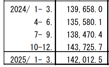 日本內閣府發佈的按季度統計的實質GDP數據,單位為10億日元。